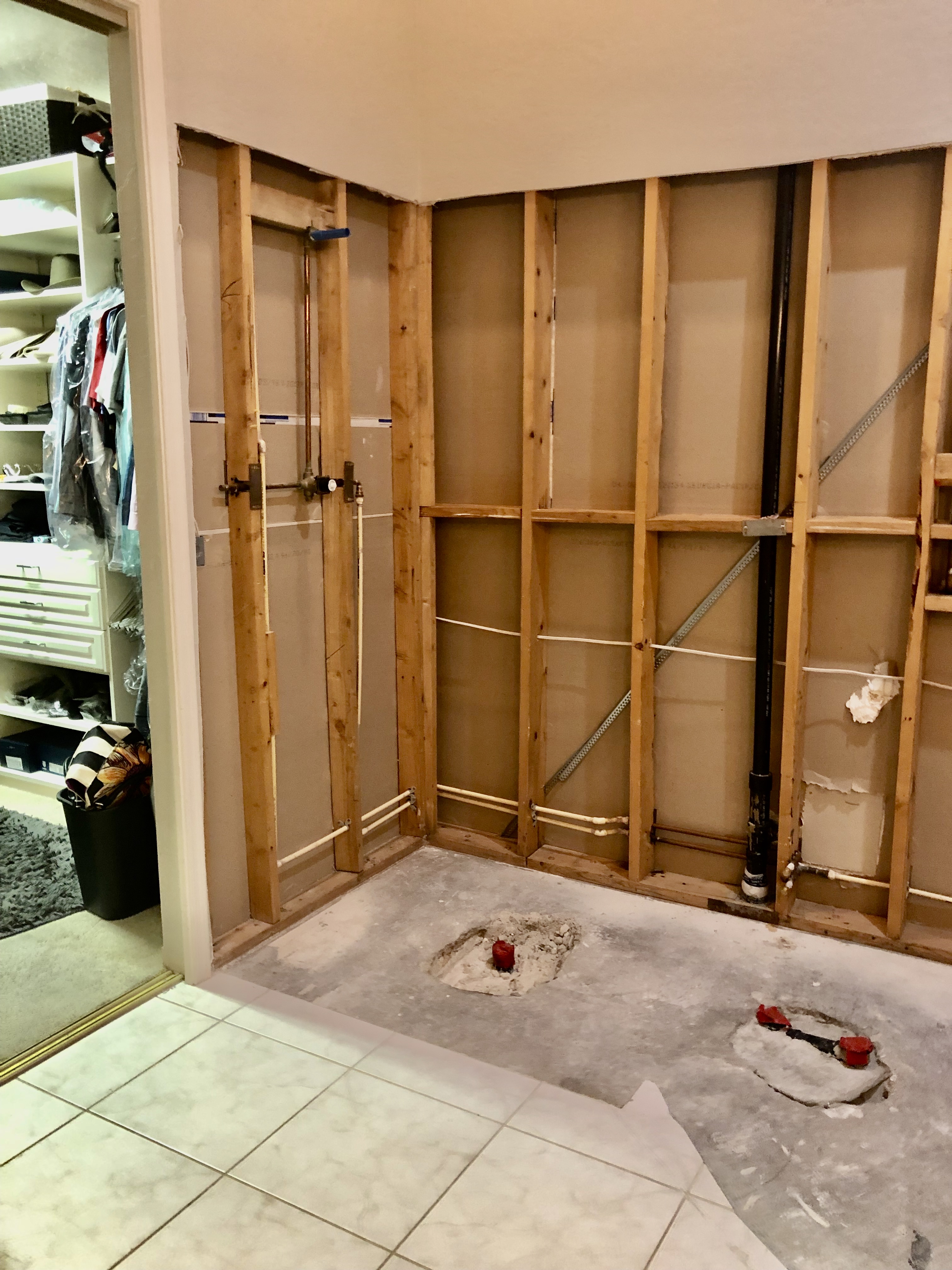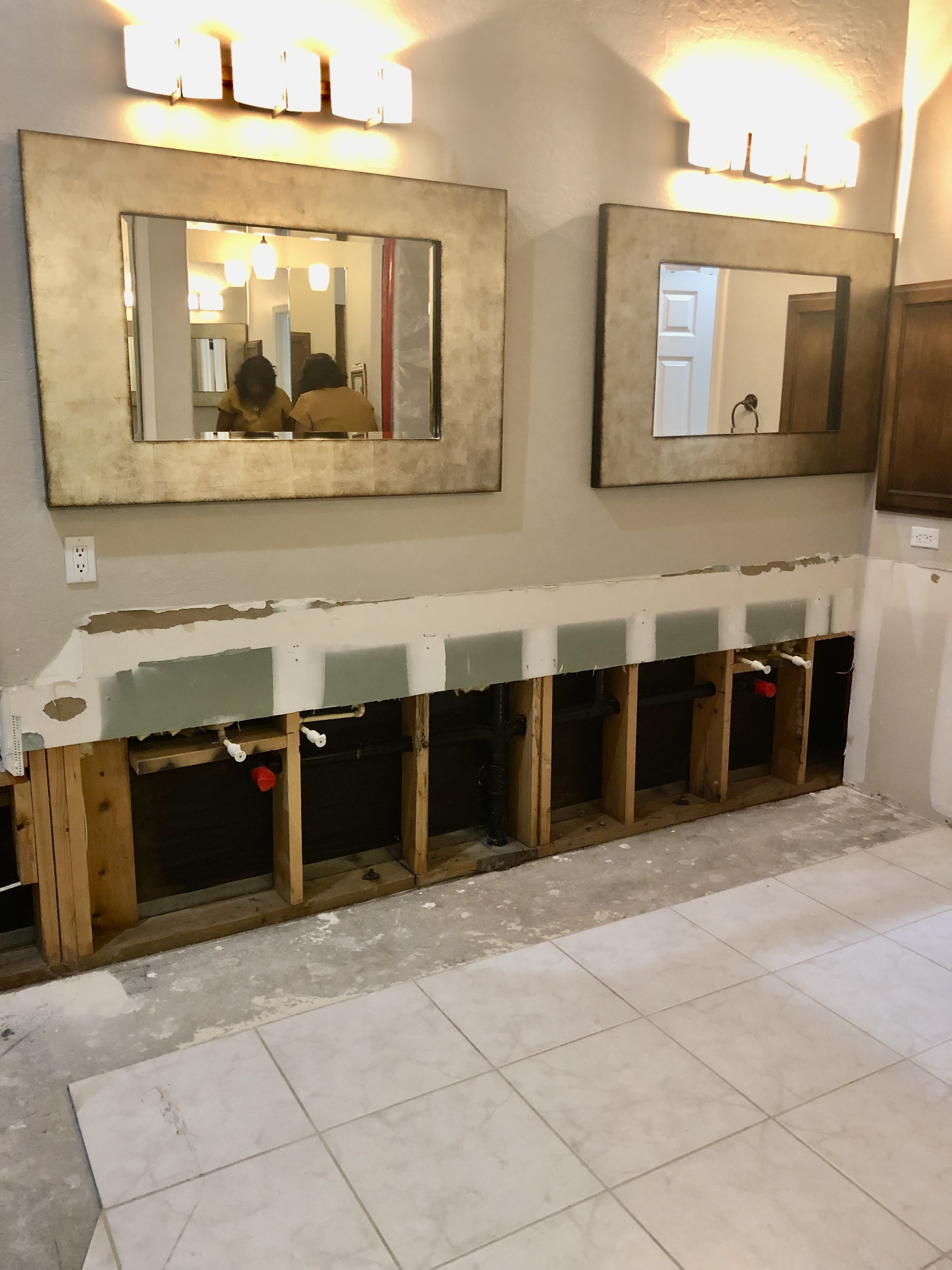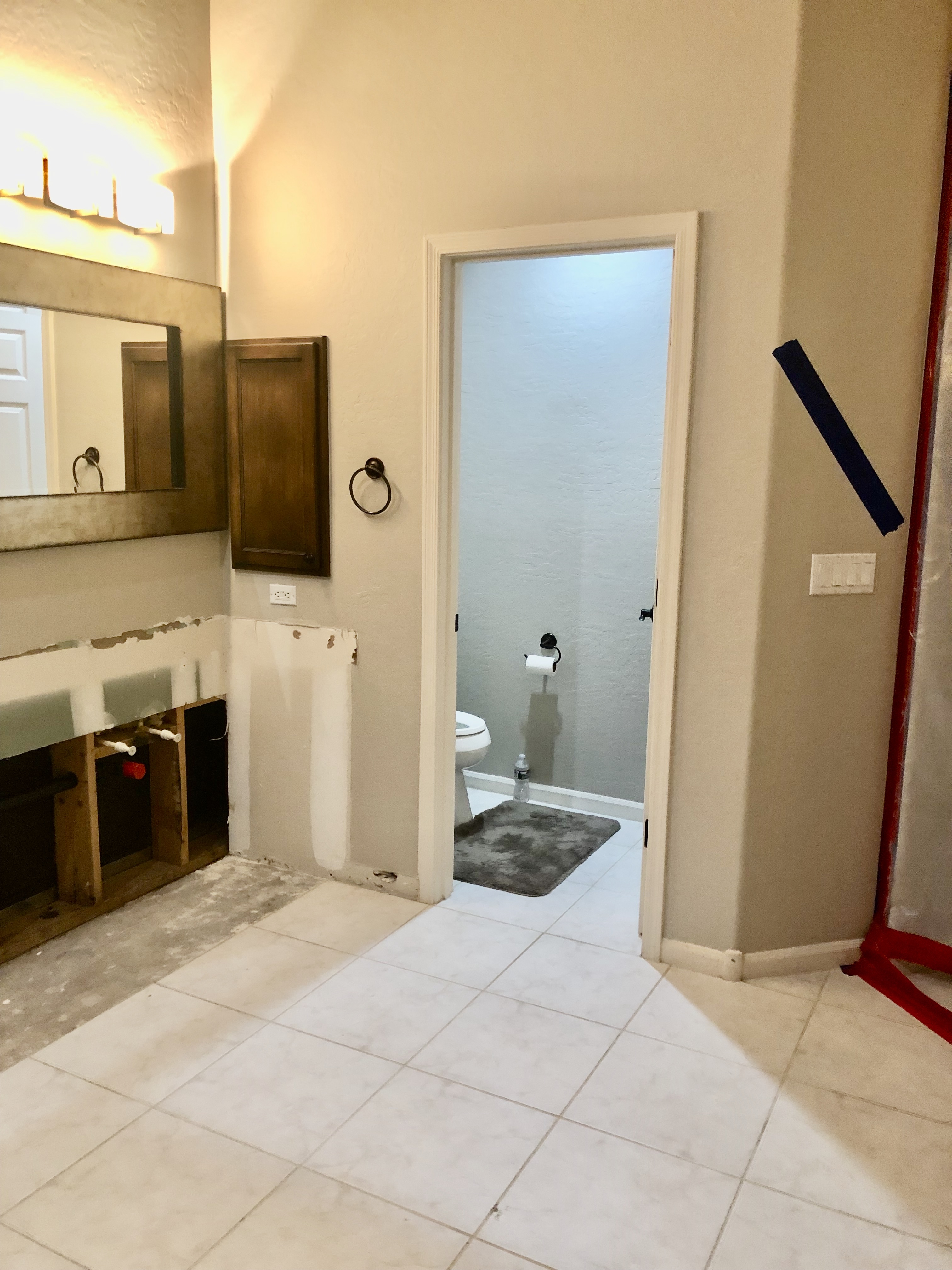 The entire master bathroom ended up being gutted. My husband nor I had ever sought the advice of an Interior Designer. It was much needed because we could not agree on any part of the remodel, thus delaying the process even more.